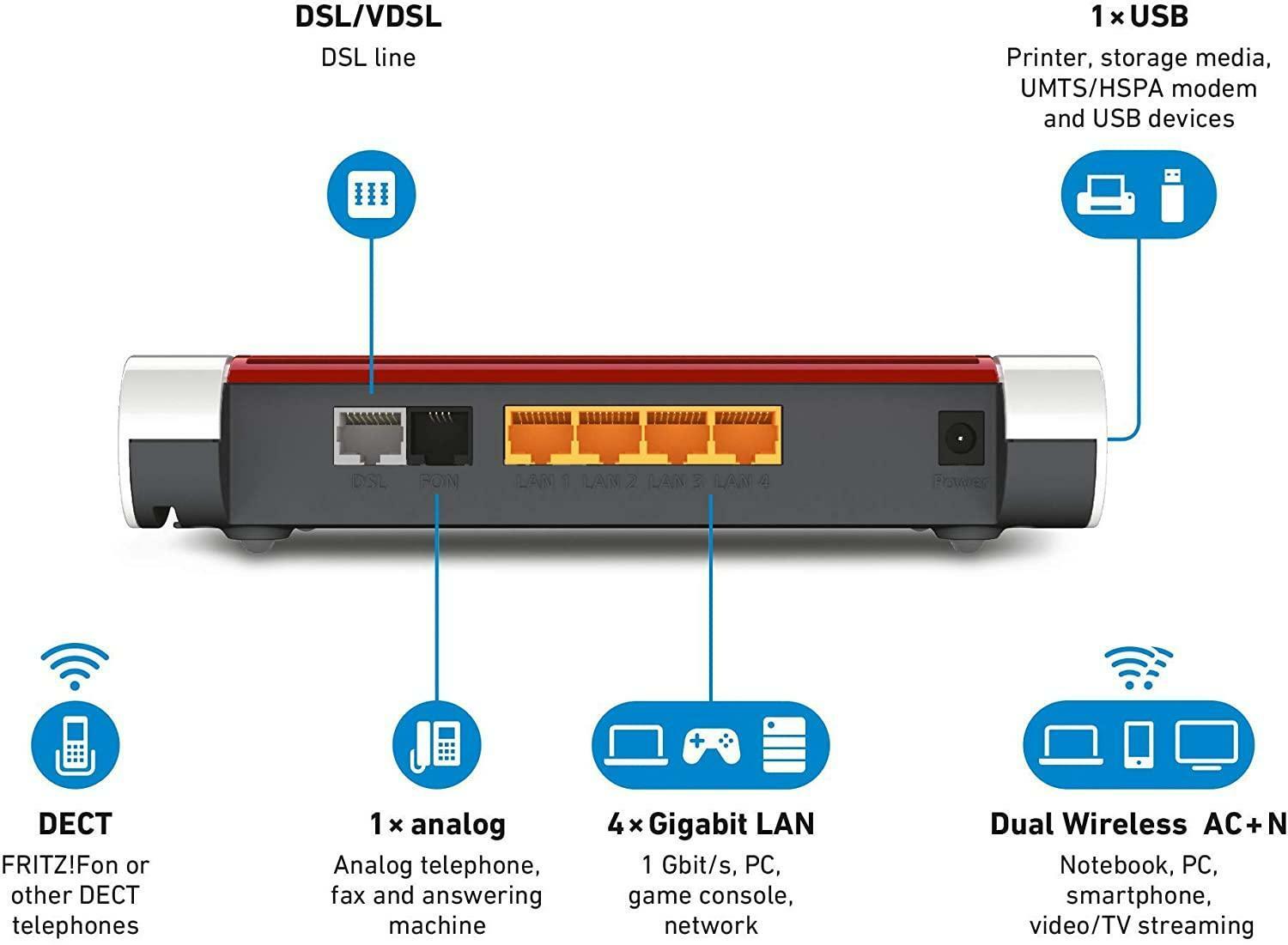 vm fritz. Box 7530 international modem router wireless veloce ac n (fibra/vdsl/adsl/adsl2 , 866 MBit/s (5 ghz) 400 MBit/s (2,4 ghz), velocità internet fino à 300 MBit/s,
